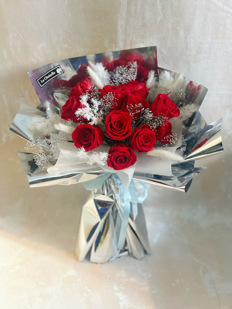 (情人節預訂) 熱情約會11枝紅保鮮玫瑰花束|保鮮花 永生花生日花束 Pink Puple Preserved Flower Bouquet