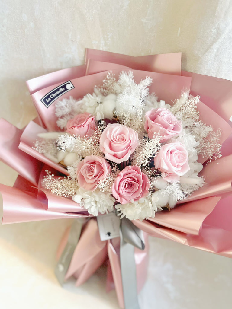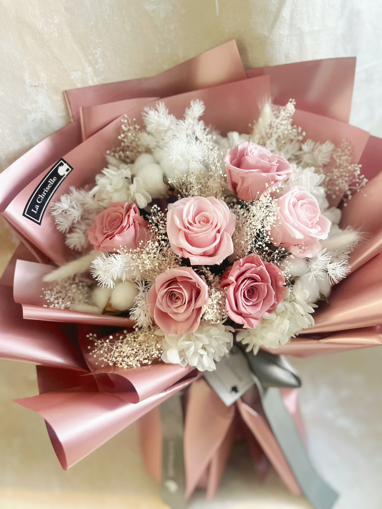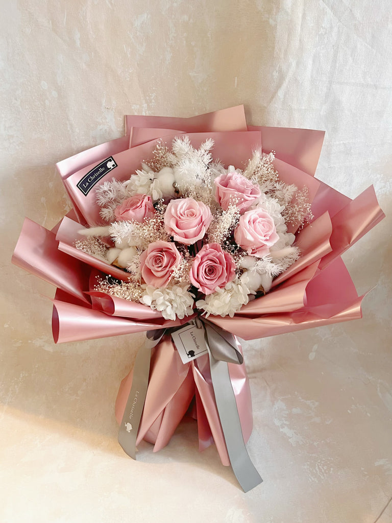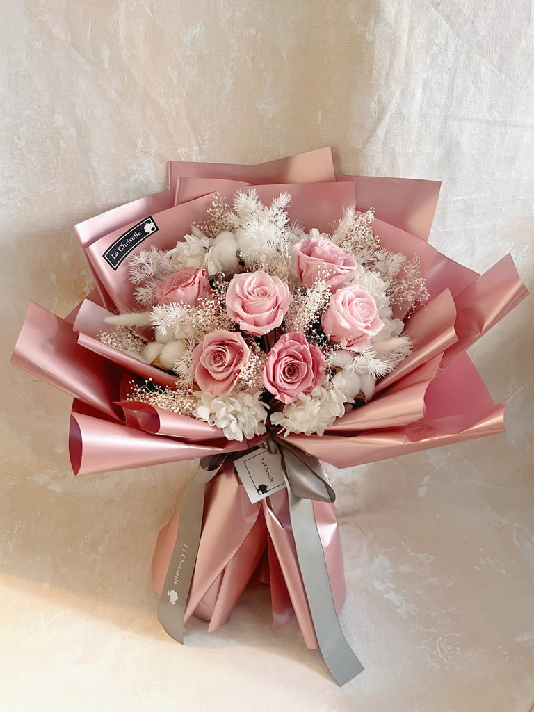 (情人節預訂)永恆的愛 6枝粉紅豆沙色系保鮮玫瑰花束|保鮮花 永生花生日花束6pink preserved rose bouquet