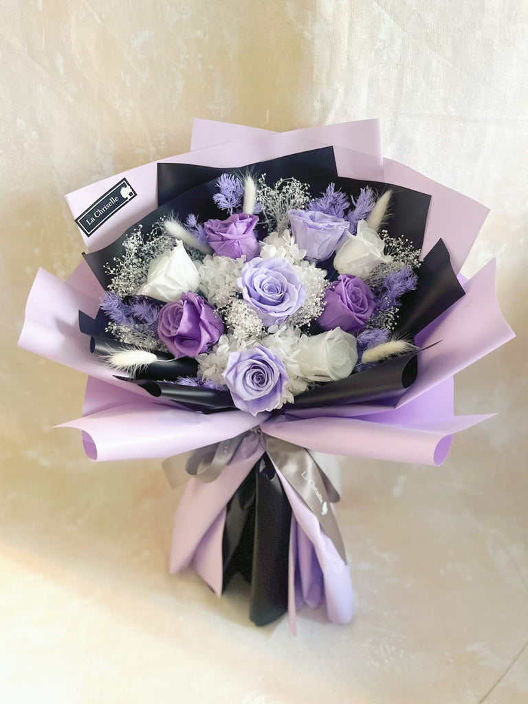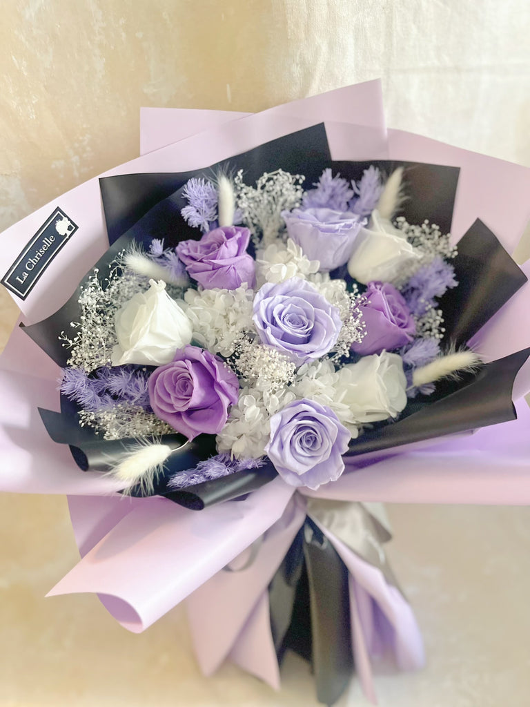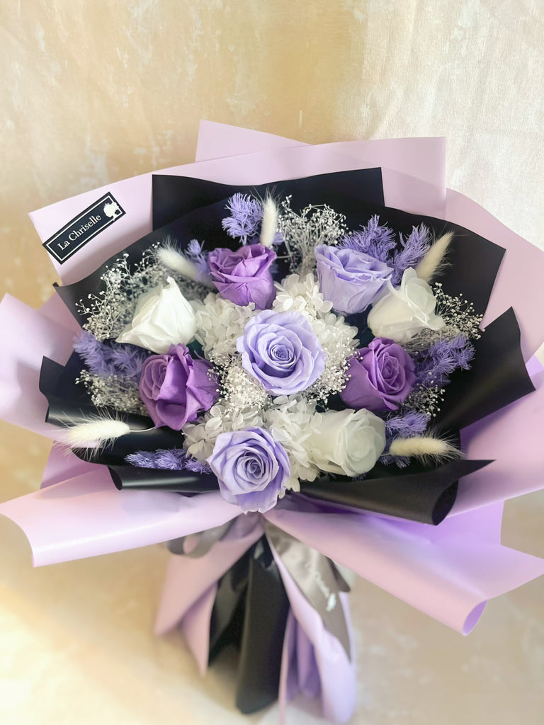 (情人節預訂)天長地久混紫9枝保鮮玫瑰花束|保鮮花 永生花生日花束 9 purple preserved rose bouquet