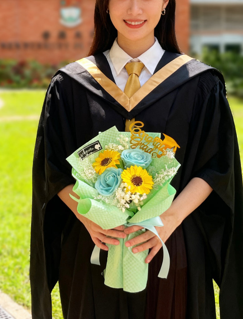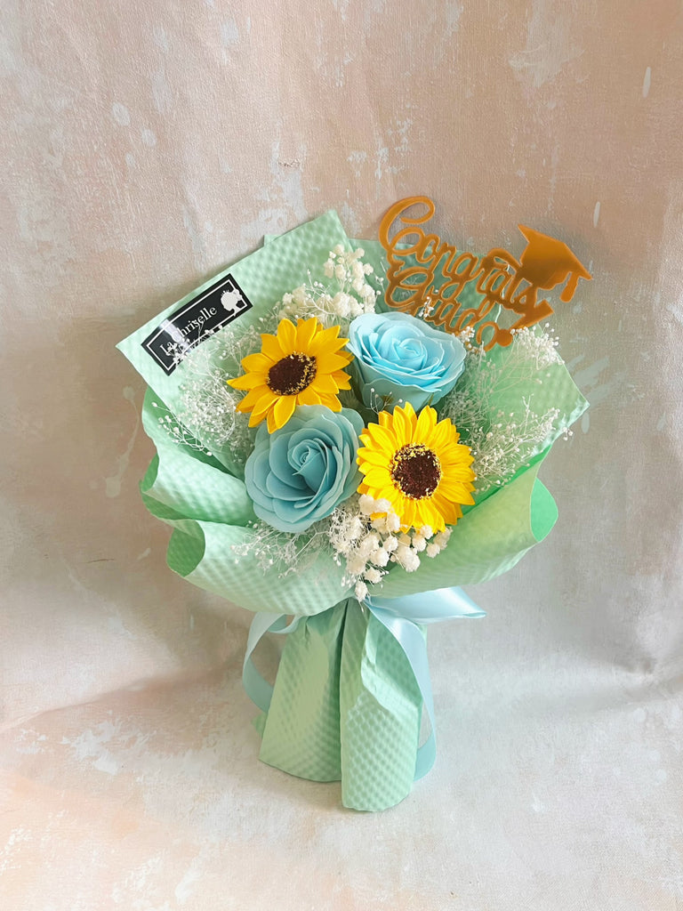 (番梘花) 小花束粉綠色-畢業花束系列—太陽花 玫瑰花 乾燥花束