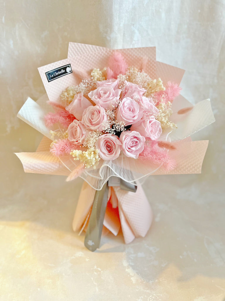(情人節預訂) 甜美 11 枝粉紅色保鮮玫瑰花束|保鮮花 永生花生日花束 11 Pink Rose Preserved Flower Bouquet