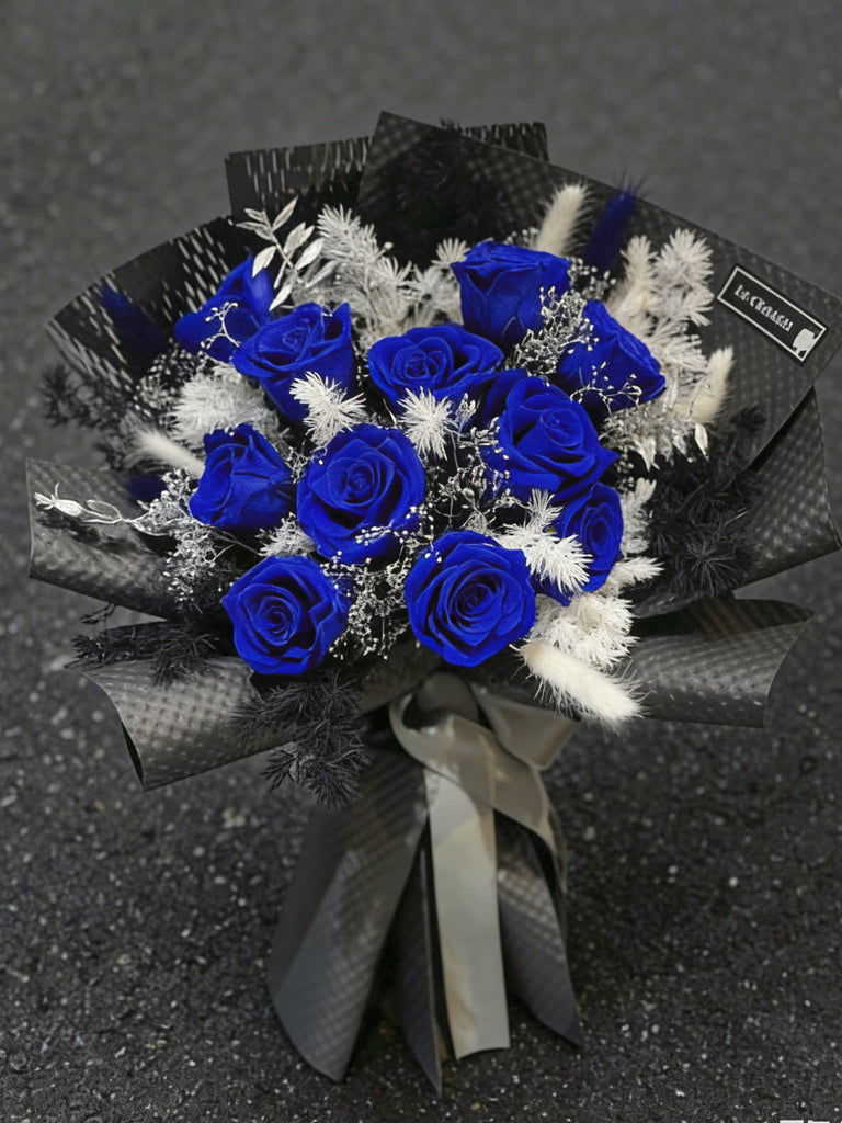 高貴美人 寶藍1 1 枝保鮮玫瑰花束|保鮮花 永生花生日花束 blue Preserved Flower Bouquet – LaChriselle