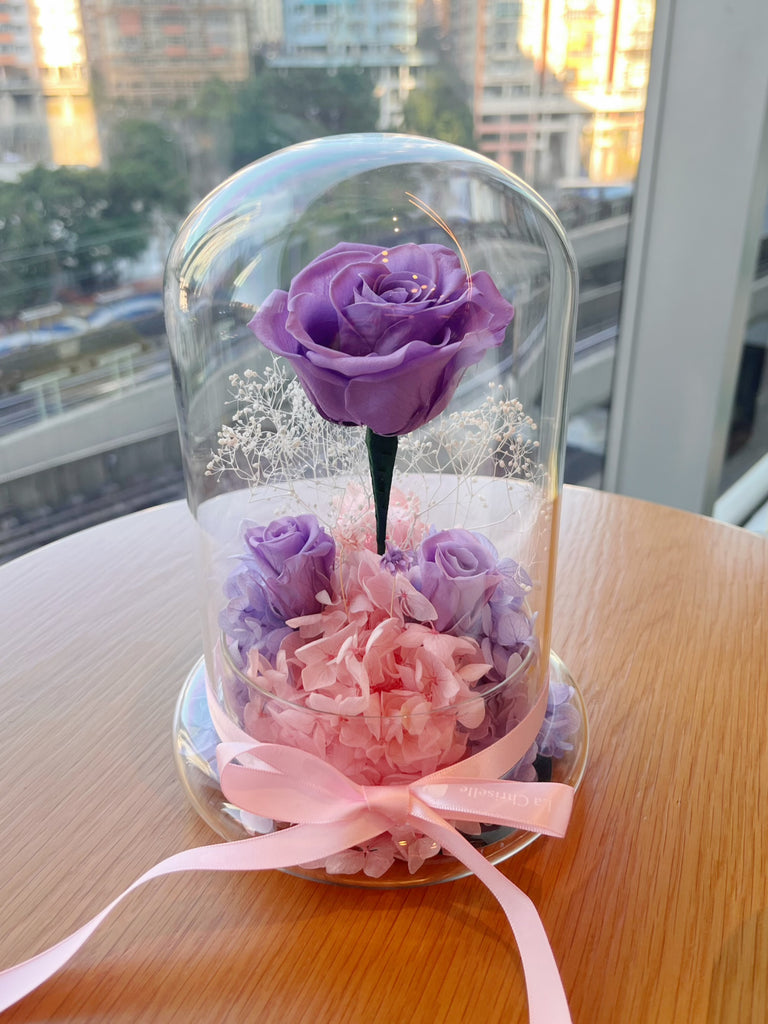 (情人節預訂) 浪漫愛情紫玫瑰花園保鮮花禮 永生花 La Romance in Purple Preserved Flowers