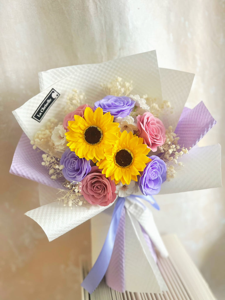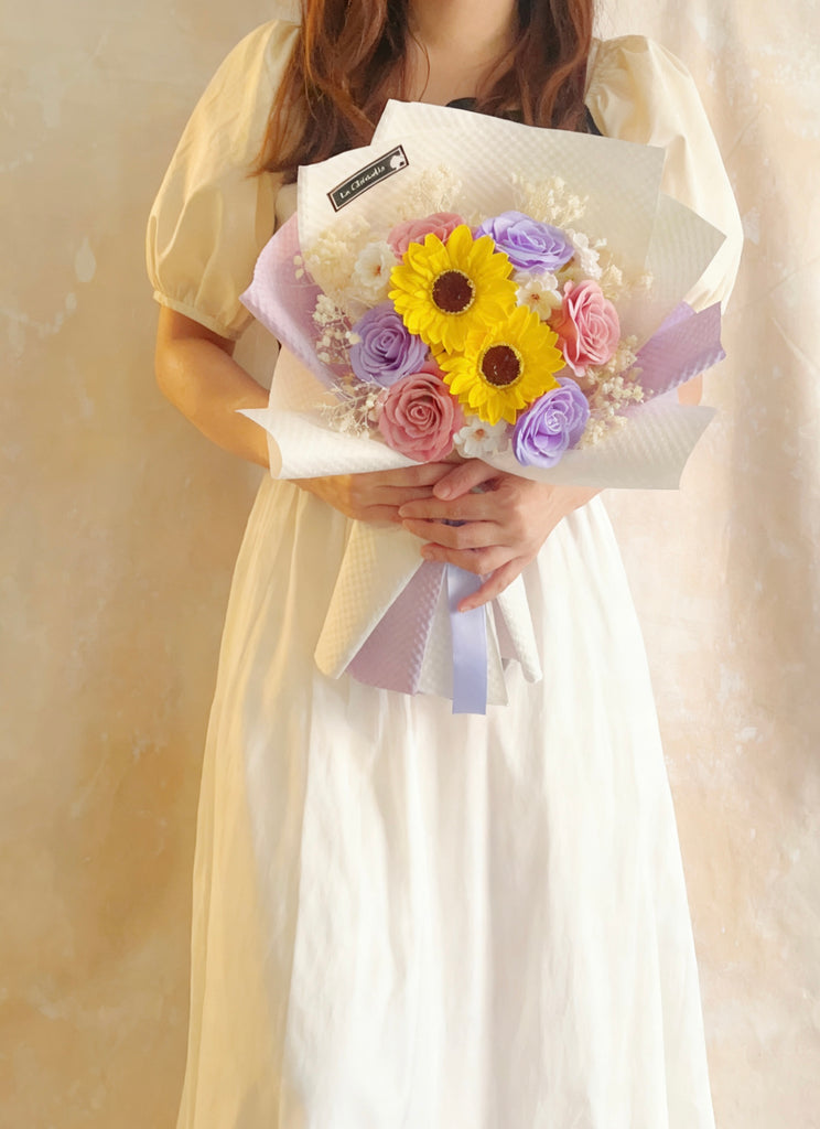 (番梘花)柔美-畢業花束系列—太陽花 玫瑰花 乾燥花束